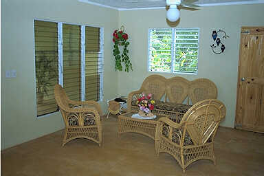 ... and dining-table. Left access to bathroom and bedrooms. Right the terrace.